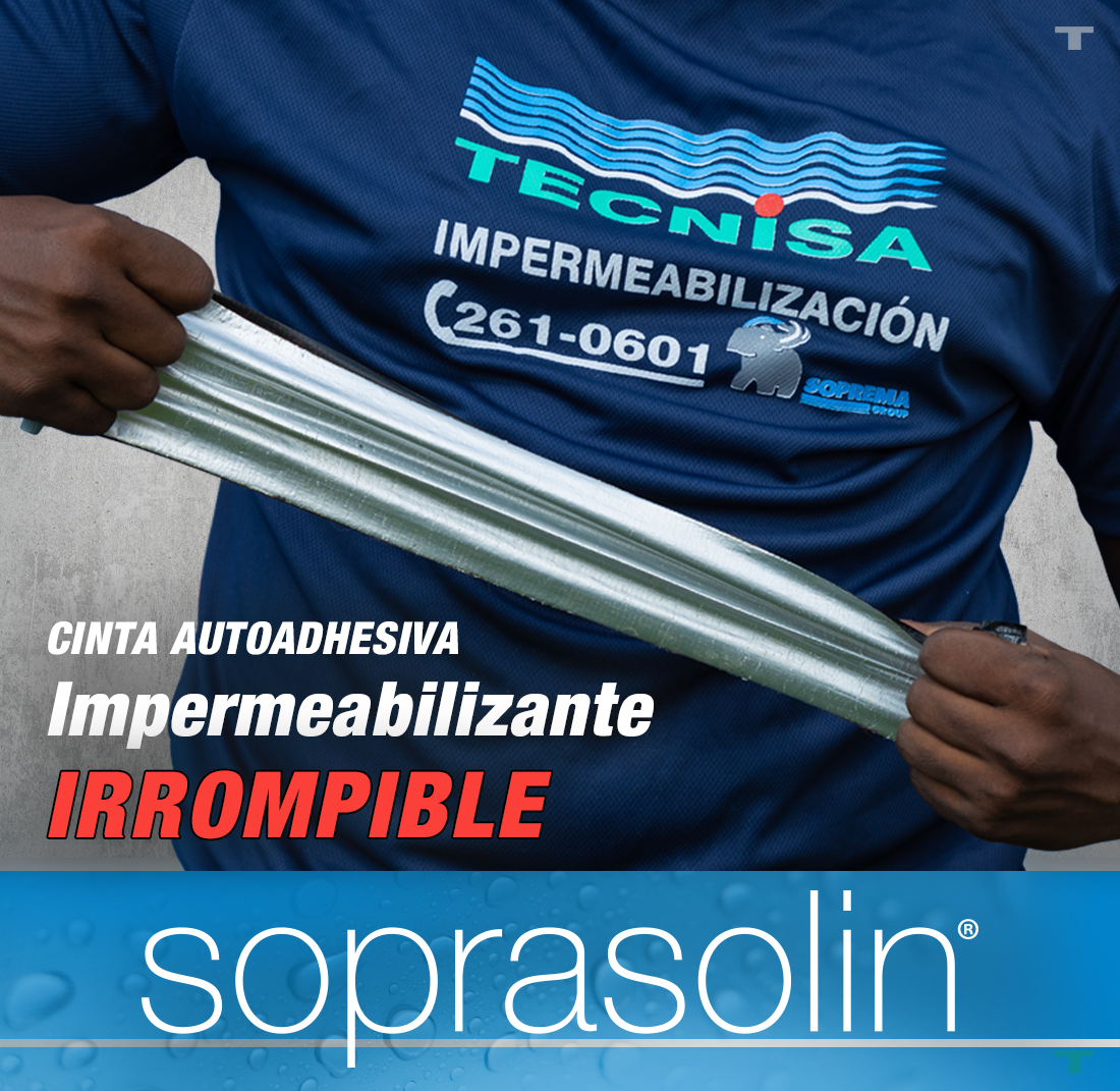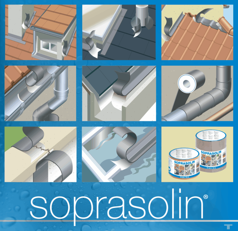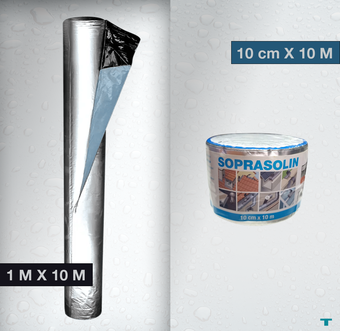 SOPRASOLIN® es una cinta impermeabilizante autoadhesiva de alta resistencia al desgarro. Está compuesta por un refuerzo laminado sobre una lámina de aluminio y recubierta de betún elastomérico.